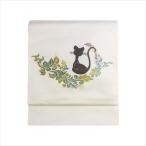 名古屋帯 正絹 白 猫 〜夢みるねこ〜 クリーム 京玉響 西陣織