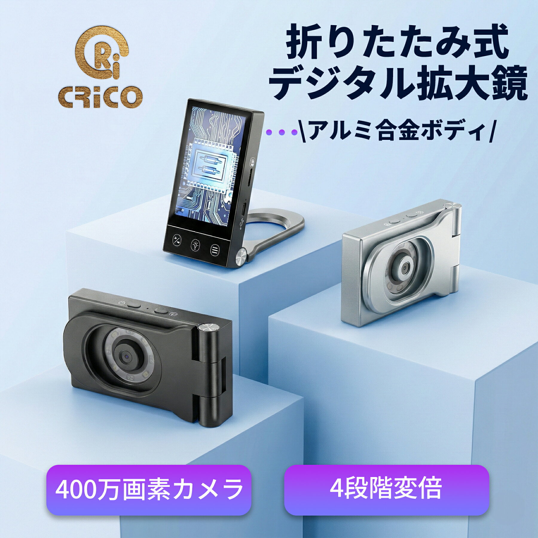 \お買い物マラソン【5%OFF】/折り畳み式デジタル拡大鏡 自由研究 子供 モニター データ 簡単 プレゼントに最適 動画 写真 PCと接続 小学生 中学生 学習用 デジタルマイクロスコープ 拡大鏡 虫眼鏡 CRiCO by 黒鳥商店