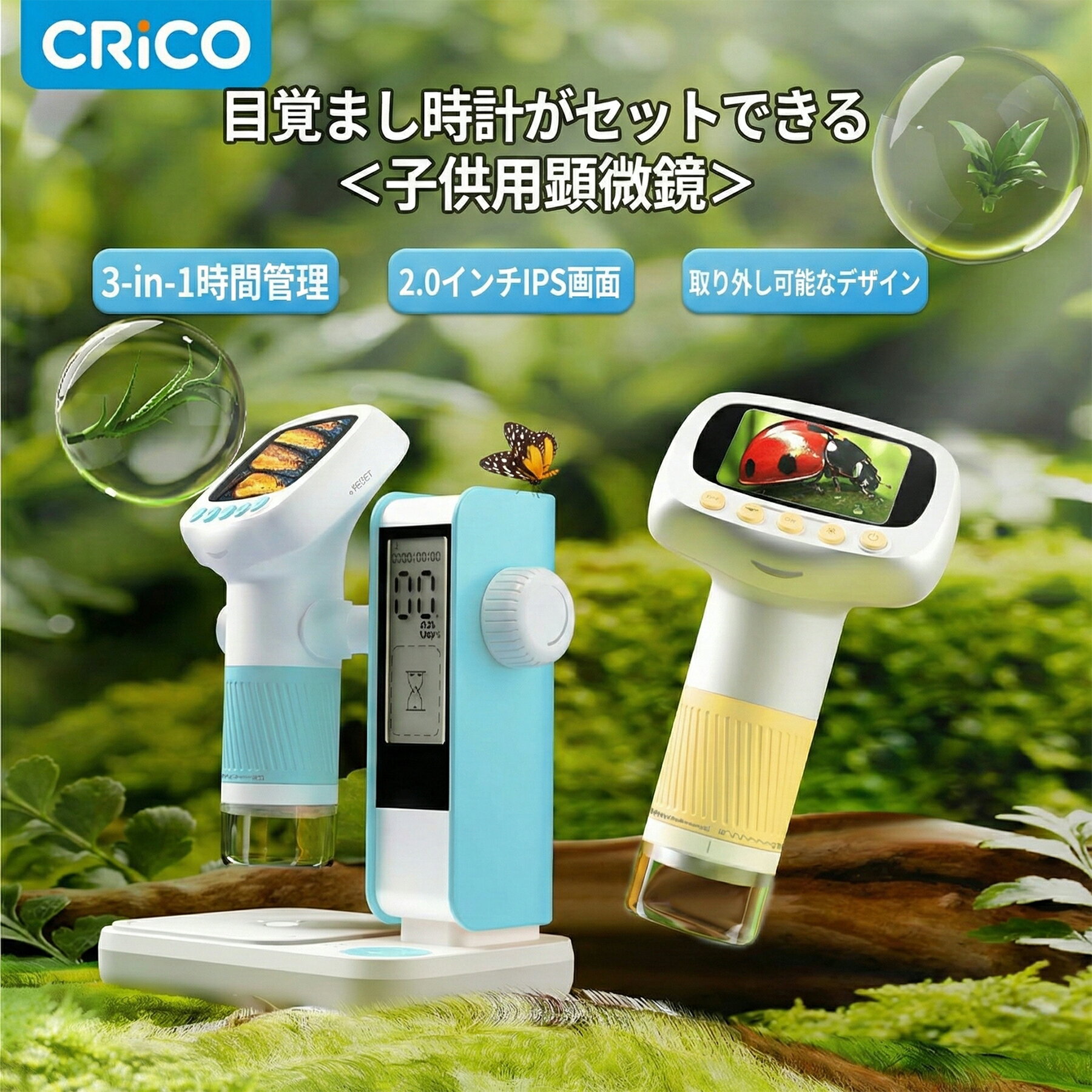 \お買い物マラソン【5%OFF】/子供用 デジタル顕微鏡 時間管理タイマー付き 3way使用 2.0インチIPS液晶 ポータブル ハンディ顕微鏡 学習用 観察 自由研究 小学生 知育玩具 誕生日や入園・入学祝いなどの贈り物として探している人に刺さるスタイルです CRiCO by 黒鳥商店