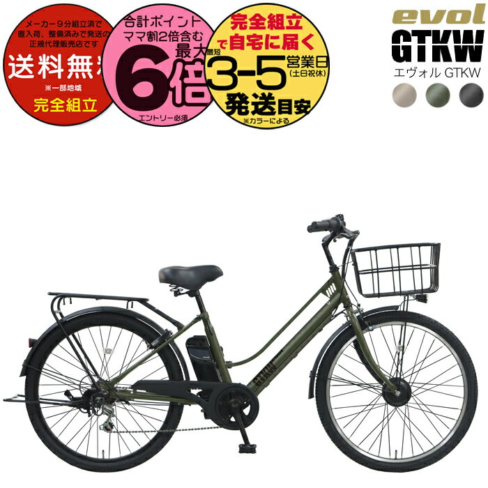 【最大6倍エントリ要】送料無料※一部地域 エヴォル GTKW EVOL EGK66A 2025年モデル 外装6段変速 26インチ ワイルド 太タイヤ 電動自転車 電動アシスト自転車 アサヒサイクル エボル ヴィヴァーチェ 通勤 通学 買物 9Ah相当6.0Ahリチウムイオンバッテリー