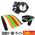 自転車 パーツセット ライト カギ フェンダー 26インチ 27インチ 鍵 ワイヤーロック 泥除け クロスバイク用3点セット LEDライト 自転車用アクセサリー