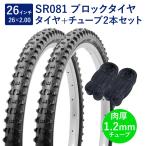 自転車 タイヤ 26インチ ブロックタイヤ チューブ 各2本セット 英式 バルブ 肉厚チューブ 1.2mm SR081 26×2.00 H/E 黒 ペア巻 Shinko シンコー