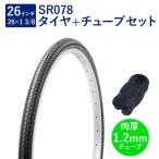 自転車 タイヤ 26インチ スタンダードタイヤ チューブ セット 英式 バルブ 肉厚チューブ 1.2mm SR078 26×1-3/8 W/O 黒 タチ巻 Shinko シンコー