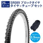 自転車 タイヤ 26インチ ブロックタイヤ チューブ セット 英式 バルブ 0.9mm SR089 26×1.95 H/E 黒 タチ巻 Shinko シンコー