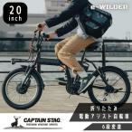 キャプテンスタッグ 電動自転車 eワイルダー 20インチ 折りたたみ自転車 シマノ6段変速 極太タイヤ 前後Vブレーキ 前後泥よけ LEDライト 大型サ