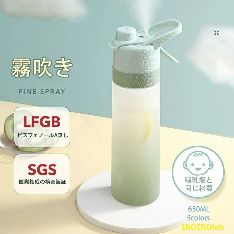 【全品2点で5%OFF】水筒 おしゃれ ミストウォーターボトル 650ml 水分補給 直飲み スプレー 軽量 漏れ防止 スプレーボトル 霧吹き スプレーコップ スポーツボトル ウォーターボトル アウトドア スポーツ 登山用 キャンプ ランニング ジム ハイキング 自転車