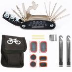 自転車用マルチツール + パンク修理キットセット 多機能自転車工具 各種ドライバー/レンチ/ソケットレンチ 自転車の整備や修理に 収納ポーチ付 LP-CYTO315