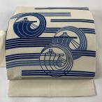 名古屋帯 美品 逸品 栗山吉三郎 落款あり 帆掛船 霞 縮緬 クリーム 正絹 中古