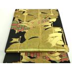 平和屋着物●塩瀬 九寸名古屋帯 型染め 船 黒地 金彩 正絹 逸品 CABA1089hy
