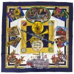 エルメス HERMES カレ 90 THE ORIGINAL NEW ORLEANS CREOLE JAZZ 1923 楽器 馬 船 スカーフ シルク ネイビー マルチカラー レディース 中古