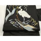 平和屋着物●アンティーク 大正ロマン 九寸名古屋帯 総刺繍 船 白鷺 黒地 金銀糸 正絹 逸品 CAAX9491yk