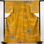 訪問着 身丈160cm 裄丈64cm M 袷 大彦 落款あり 建物 船 金銀糸 刺繍 山吹茶色 正絹 逸品 中古