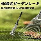 伸縮式ガーデンレーキ 熊手 レーキ 落ち葉レーキ 芝生レーキ 落葉掃きレーキ 庭掃除 草刈り 長さ調節可能 ヘッド幅調節可能