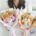 手提げ袋付き ぬいぐるみ花束 ひまわり バラ 編み物ブーケ KNK(株) 記念日 誕生日 結婚祝い プレゼント インテリア 置き物 ギフト 写真映え イベント 衣装