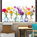 ガラスステッカー 静電気 非粘着 ガラスフィルム 透明 窓用 ガラスの花瓶 水色 花束 ガーベラ ダリア コスモス 壁シール 壁デコ 北欧風 DIY リビング