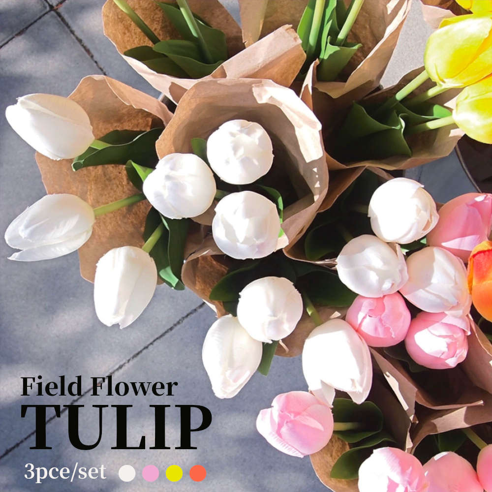 6%OFFクーポン★【3本SET】春だけじゃない、年中楽しめる。チューリップのアーティシャルフラワー 造花 ブーケ 韓国 インテリア フラワーアレンジメント 花材 フェイク 枯れない 結婚式 イベント ウェルカムスペース