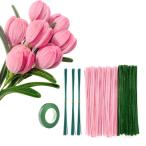 seimeinoki 手芸モール ピンク色*200本+緑色*100本 造花 チューリップ 花束 手作りキット お花 モ