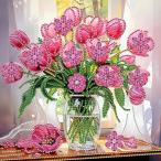 ラインストーンビーズ ハーフ ダイヤモンドアート 刺繍キット ガラスの花瓶 花束 チューリップ マーガレット モザイクアート パズルアート リハビリ 趣味 絵画