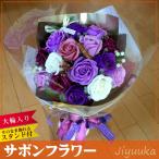 ソープフラワー サボンフラワー ギフト 花束 パープル ミックス 15本 バラ 大輪入 古稀 喜寿 傘寿 卒寿 誕生日 記念日 開店祝い 退職祝い プレゼント スタンド付