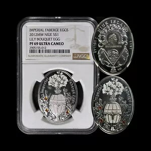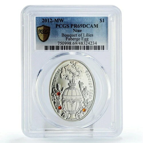 ニウエ、2012年、1ドル、銀 - PCGS PR69 - ファベルジェの卵、ユリの花束の卵。