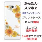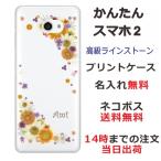 かんたんスマホ2 ケース A001kc カバー ラインストーン かわいい フラワー 花柄 らふら 名入れ 押し花風 春花
