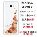 かんたんスマホ2 ケース A001kc カバー ラインストーン かわいい フラワー 花柄 らふら 名入れ 押し花風 バラ