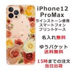 iPhone12 Pro Max ケース アイフォン12プロマックス カバー ラインストーン かわいい らふら フラワー 花柄 押し花風 バラ