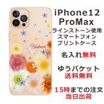 iPhone12 Pro Max ケース アイフォン12プロマックス カバー ラインストーン かわいい らふら フラワー 花柄 押し花風 春花