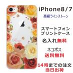 iPhone8 ケース アイフォン8 カバー ラインストーン かわいい らふら フラワー 花柄 押し花風 オレンジ