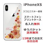 iPhone Xs ケース アイフォンXs カバー ラインストーン かわいい らふら フラワー 花柄 押し花風 オレンジ