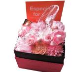 ガラスの靴 花束 プロポーズ 彼女 シンデレラ サプライズ あすつく 花束風 クリアーケース付き プリザーブドフラワー入り ピンク仕上げ