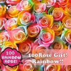 レインボーローズ 100本 花束 あすつく 誕生日プレゼント 記念日 女性 奥様 彼女 友達 プリザーブドフラワー使用 枯れない