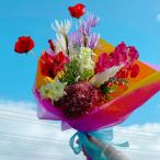 送料無料 ビビットカラー 韓国風 花束 ブーケ カラフル ラッピング 胡蝶蘭 ひまわり 送り花 プレゼント花 ひなげし
