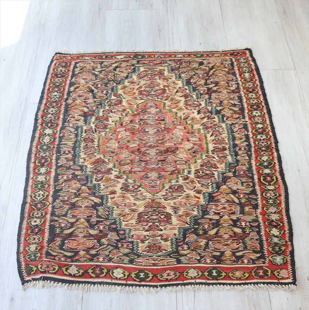 【15%OFFクーポン対象】オールドキリム セネ/ヤストゥク93×70cm赤い六角メダリオン細かな花束モチーフ