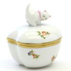 ヘレンド 小物入れ(ハート形)猫飾り 小さな薔薇の花束・ピンク ボンボン入れ Herend