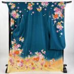 振袖 身丈172.5cm 裄丈72cm L 袷 花束 草花 箔 金彩 深緑 正絹 名品 中古