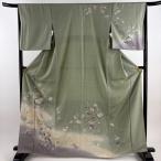 美品 訪問着 身丈166.5cm 裄丈66cm M 袷 花束 牡丹 染め分け ぼかし 灰緑 正絹 秀品 中古