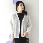 スカラー ScoLar 花束プリント 異素材切替カーディガン (オフホワイト)