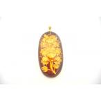 琥珀 コハク アンバー ペンダントトップ 天然石パーツ K18 花束裏彫り