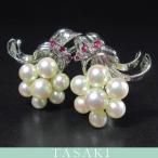 TASAKI K14WG 4.8mm〜6.3mm ラウンド アコヤ真珠 ルビー 花束モチーフ ホワイトゴールド クリップ式 イヤリング 11.4g J387