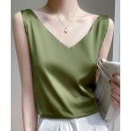 キャミソール レディース デコルテ綺麗見せ。バックキャミ風Vネックトップス