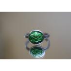 RG10-132 手作り 一点物 シルバー ミャンマー産 A貨 本翡翠 干青 指輪 フリーサイズ 彫り花