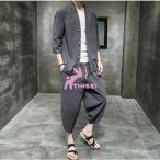 甚平 羽織 メンズ セットアップ 七分袖 前開きシャツ 上下セット 夏 浴衣風 祭り 接触冷感 サルエルパンツ クール感 和式 花火大会 サマーウエア 男性用 無地