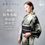 美術サロン 浴衣 重ね染 知多木綿 麻混 フォレスト オフホワイト×ブルー 白 青 日本製 仕立て上がり ゆかた レディース 婦人用 夏 着物 女性用 上品 BS80