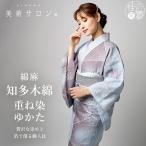 美術サロン 浴衣 重ね染 知多木綿 麻混 夏雨 ぼかし ブルー 水色 パープル 紫色 日本製 仕立て上がり ゆかた レディース 婦人用 夏 着物 女性用 上品 大人 綿麻