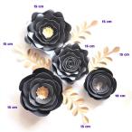 ペーパーフラワー ウォールデコ 壁飾り 花 葉っぱ キラキラ ブラック セット