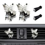 【並行輸入品】車用芳香剤ベントクリップ4個、デュアルバタフライラインストーンコンセントクリップ、エアアウトレット香水ディフューザー、キラキラ光る