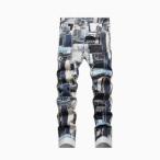 ジーンズ デニムパンツ メンズ 伸縮 細身 スキニーデニムパンツ プリント 英語文字 イージーパンツ ジーンズ ファッション 春秋