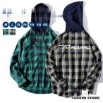 長袖シャツ メンズ フード付き パーカー ジップアップパーカー チェックシャツ 英語柄 大きいサイズ カジュアルシャツ ジェンダーレス