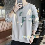 トレーナー メンズ 長袖 フェイクレイヤード 英語柄 総柄 落書き カジュアル 丸首 クルーネック ロング 春 秋